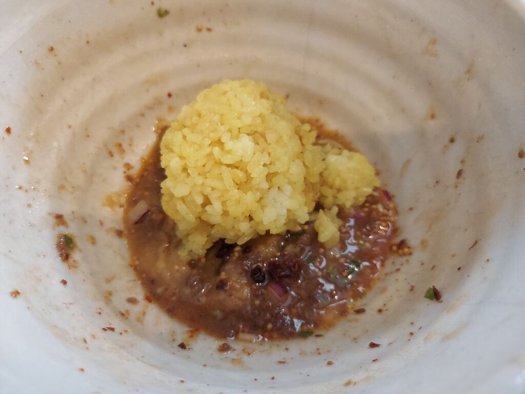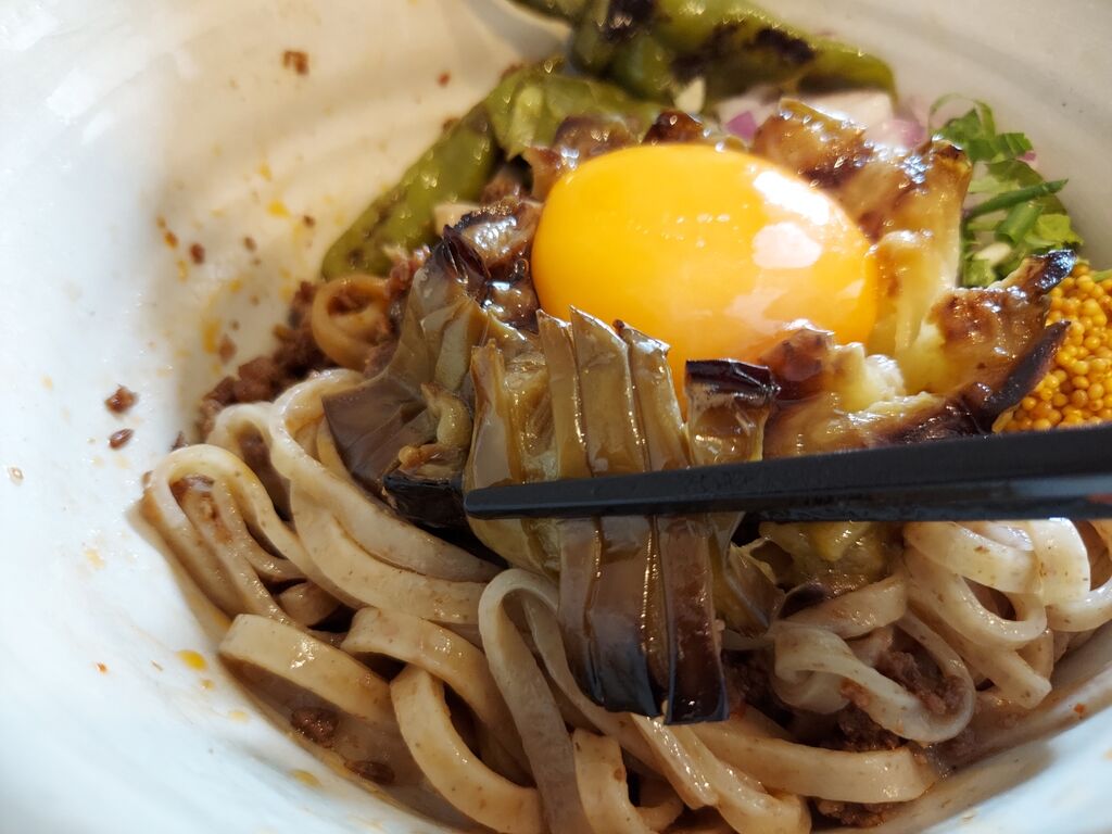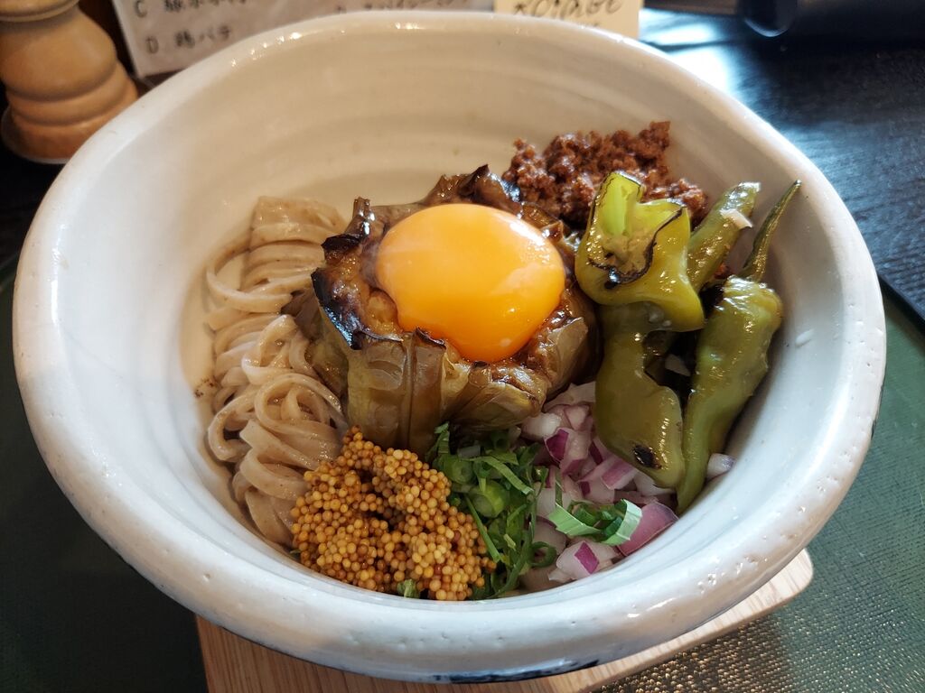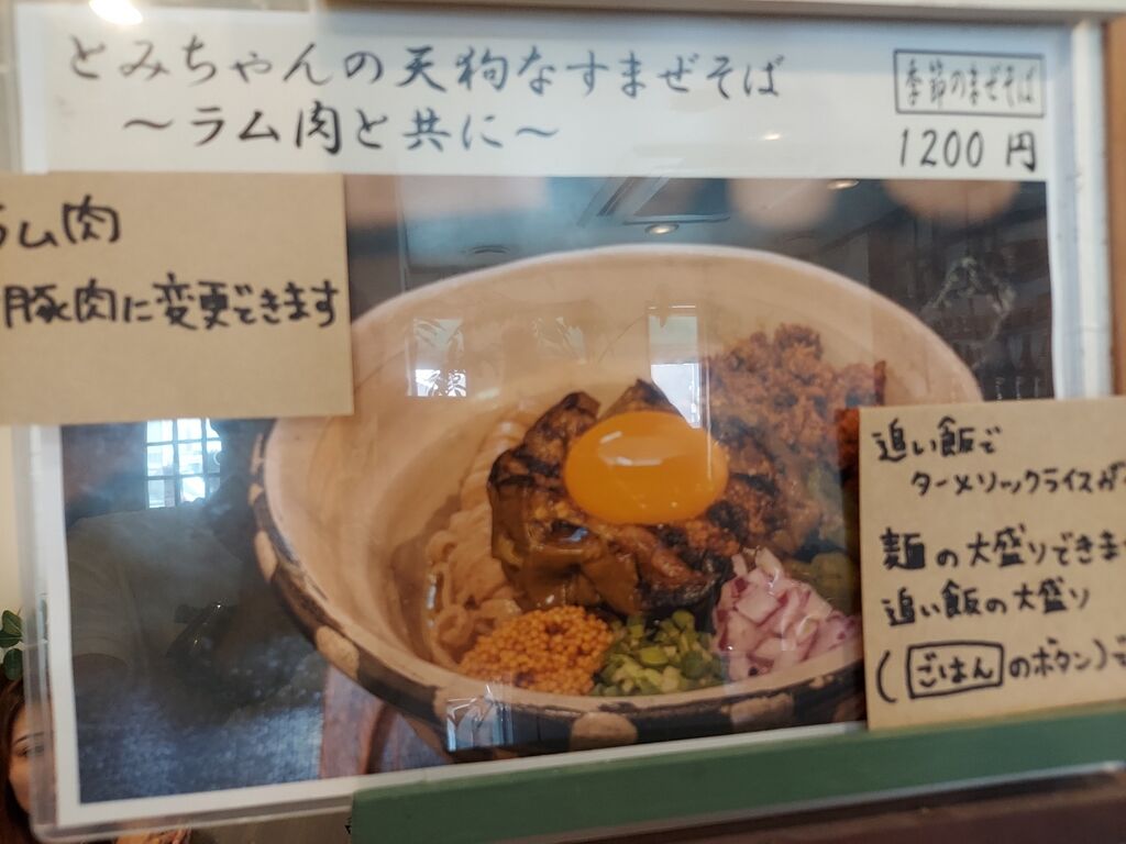 『とみちゃんの天狗なすまぜそば~ラム肉と共に・追い飯付き~ 1200円』をチョイス。