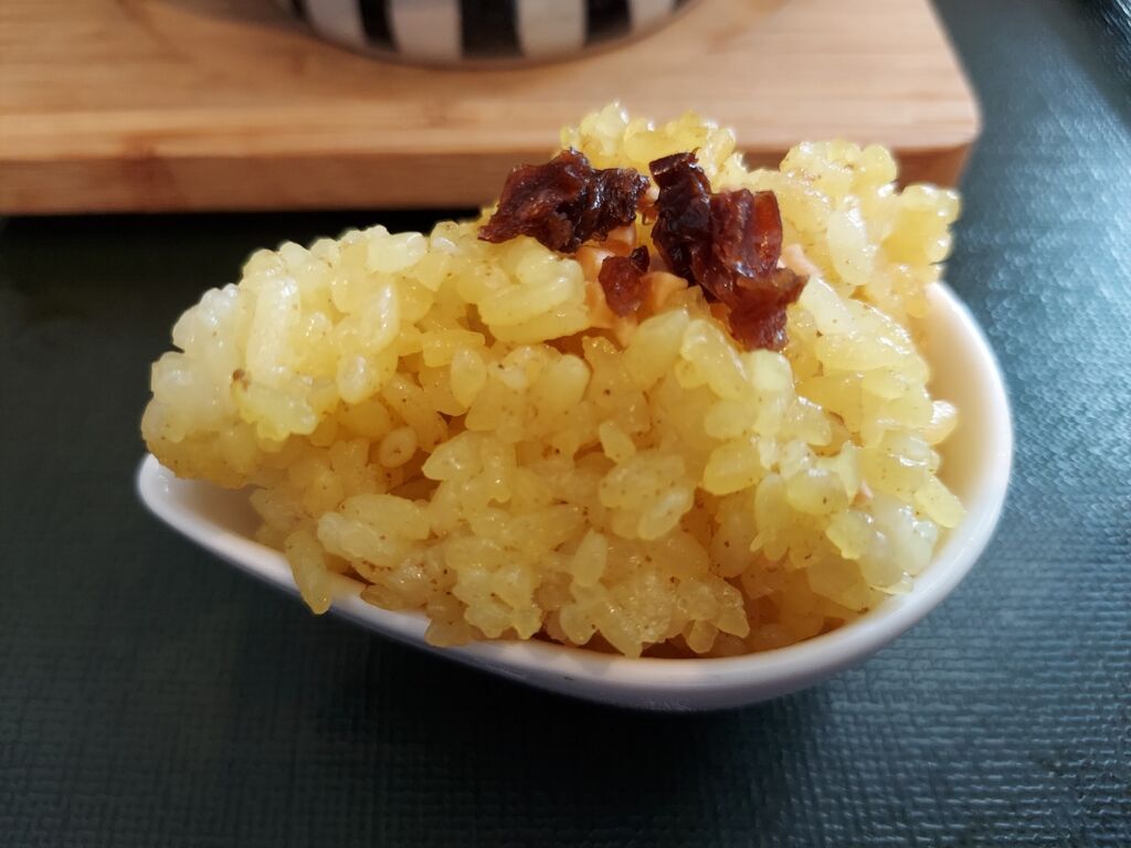 混ぜると決めたら卵をグリグリっと潰して混ぜます!