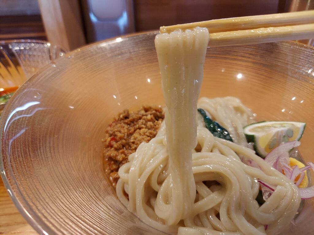 最初は常温に近い部分を啜りましたが、にゅめっとする麺は何とも表現しにくい舌に吸いつくようなモッチリ食感でなかなか他では感じれない感覚です。