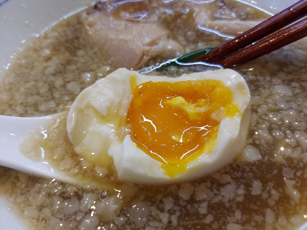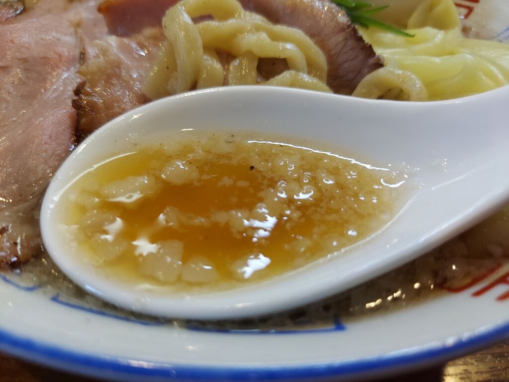 たまたまか?わざとか?わかりませんが、スープが背脂有りと無しゾーンにわかれてます!