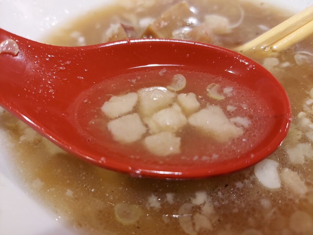 そしてスープをよく見ると玉ねぎゾーンがあり、玉ねぎの食感がまたいい!!