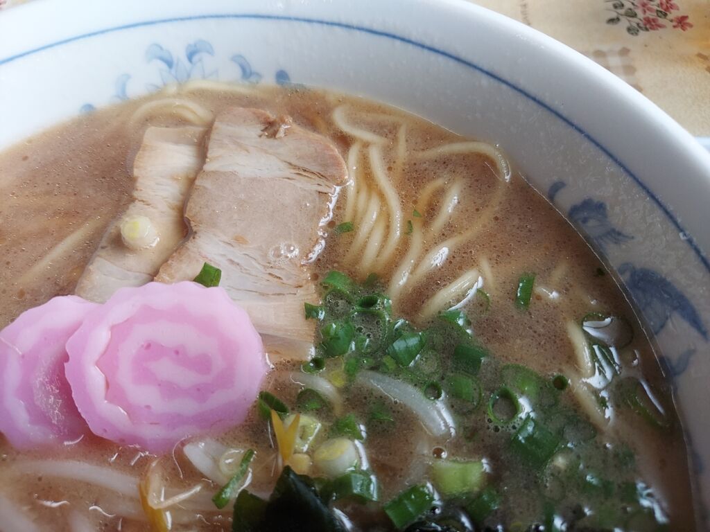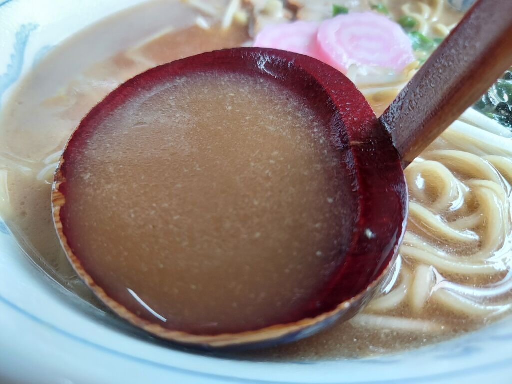 たぶん豚骨系のスープに塩味がある味ですが、醤油?味噌?と思うほどコクが有りますわ。