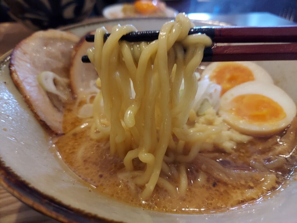 少し粘度ある濃厚に仕上げたスープは、甘辛い味噌の風味ににんにくがしっかりと効かせてあり、遠い記憶のすみれ(横浜ラーメン博物館)さんで食べた味噌を思い出させてくれます😛タブンネ
