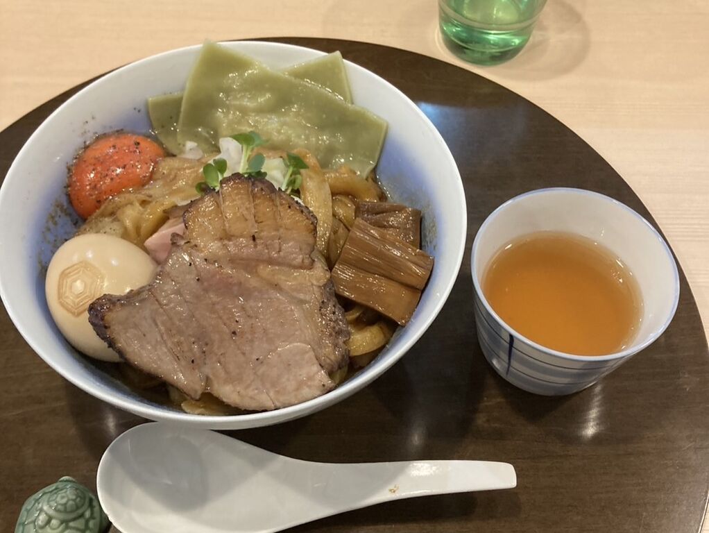 焼印入りの玉子に、鴨チャーシューにワンタンが入ってコレはお得!