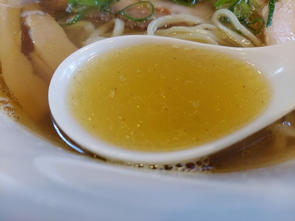 レンゲでスープをごくりとすると節をバシッと効かせたスープは塩味程よく和風な感じで冷えた身体にしみます!