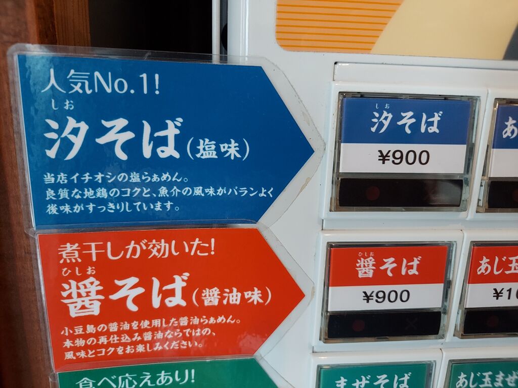 券売機は筆頭の『汐そば 900円』をプッシュ👍️です。