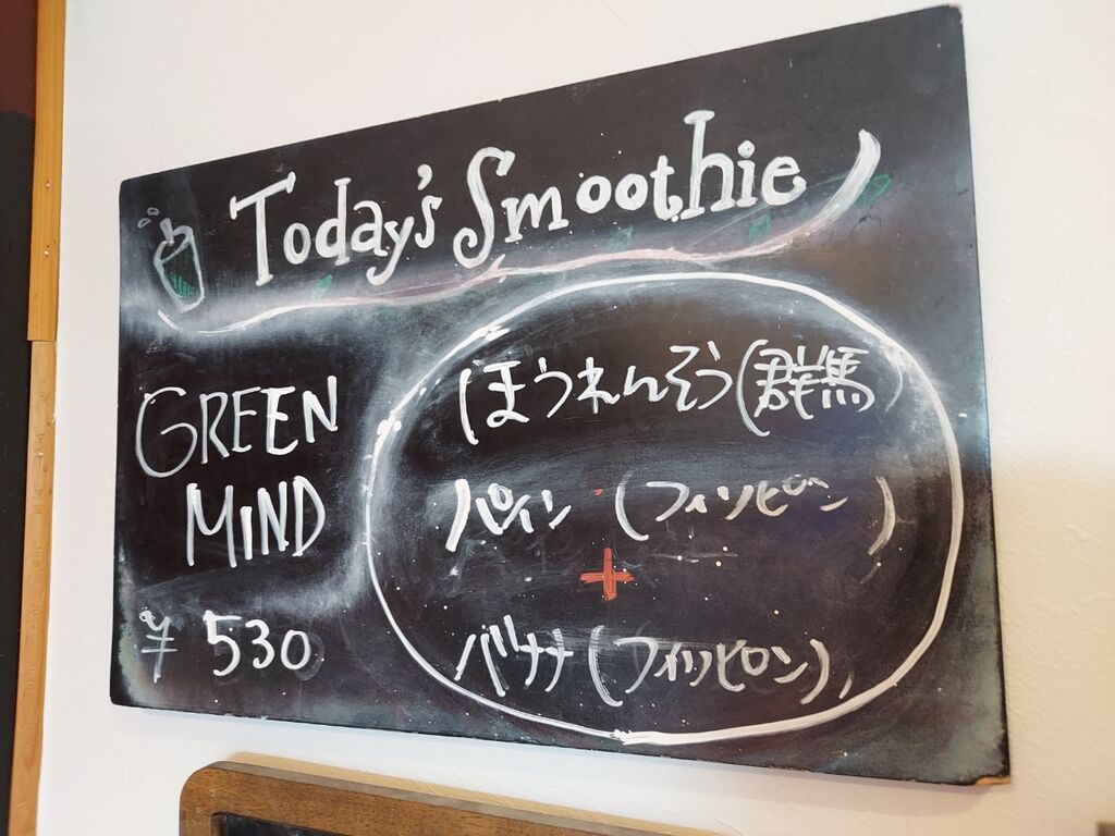 さて、注文はもちろん『小麦三昧 1530円』(塩)と『スムージー(パイン、バナナ、ホウレン草)530円』をチョイス。