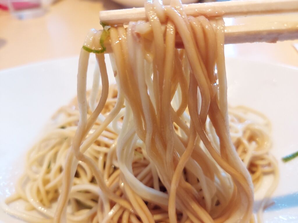 麺をリフトすると、麺はしっかりした細めの麺です。