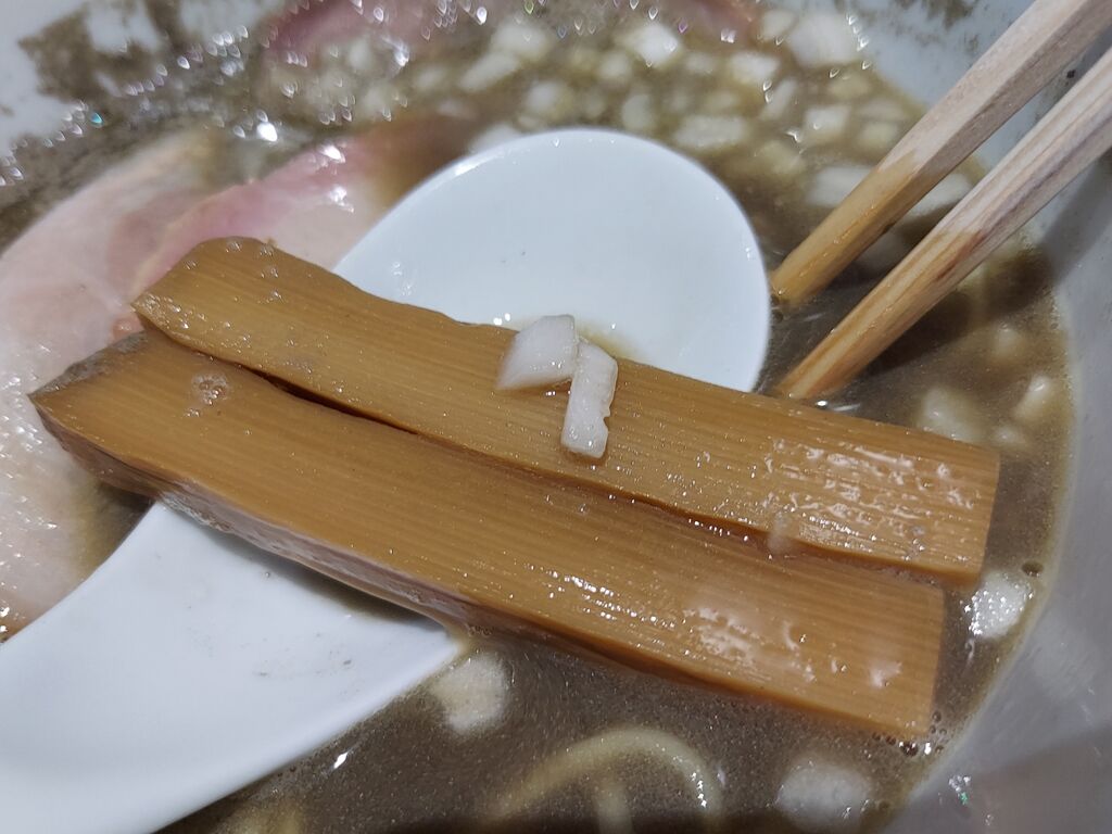 かなりしっかりしたbitter感のある煮干しスープなので、パツパツの麺で食べたかったのが素直な印象ですが、そこを置いてもかなり美味い一杯ですね!
