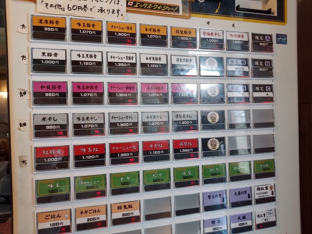 券売機チェックすると目当ての「煮干系」は売り切れ😧ガビーン