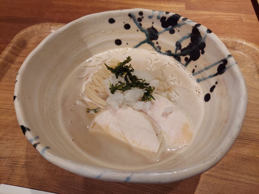 白いスープで着丼すると冷やしも牡蠣のええ薫りがしてます🦪