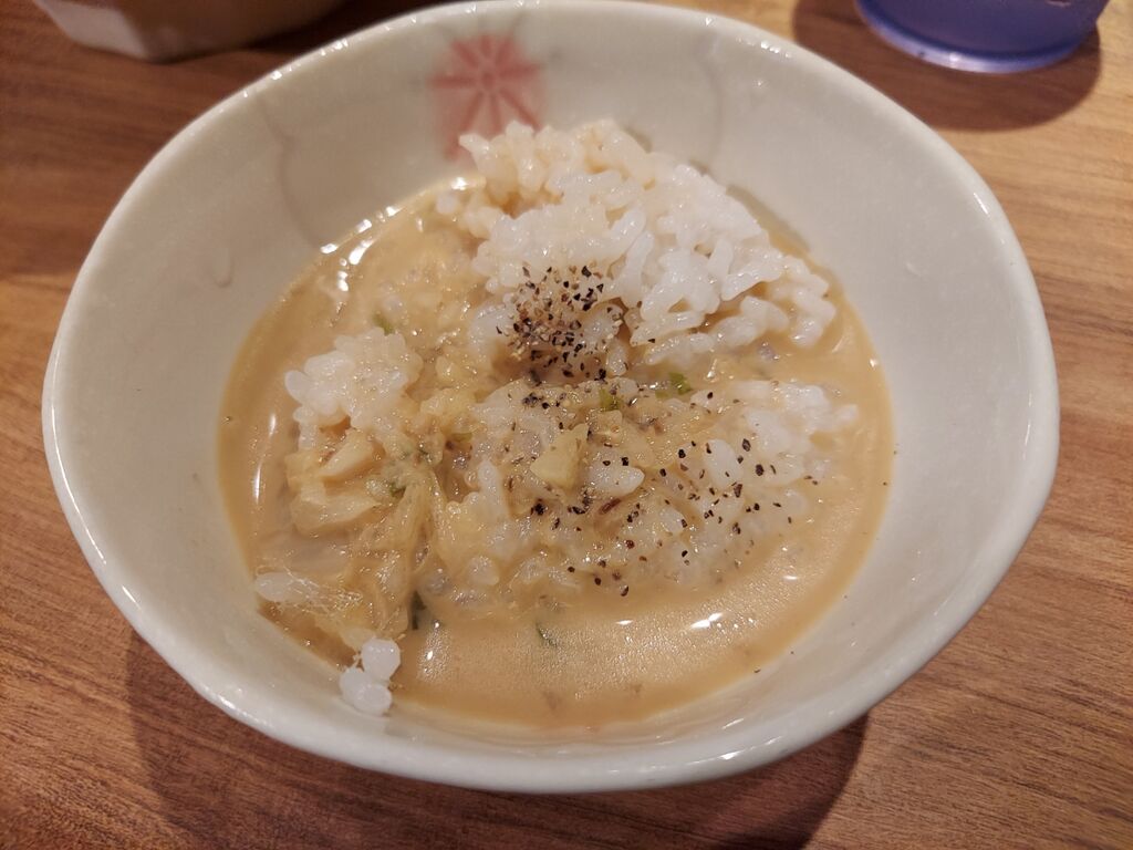 胡椒がかかった白米に牡蠣のミルキースープをかけるとむちゃくちゃ美味いぞ!
