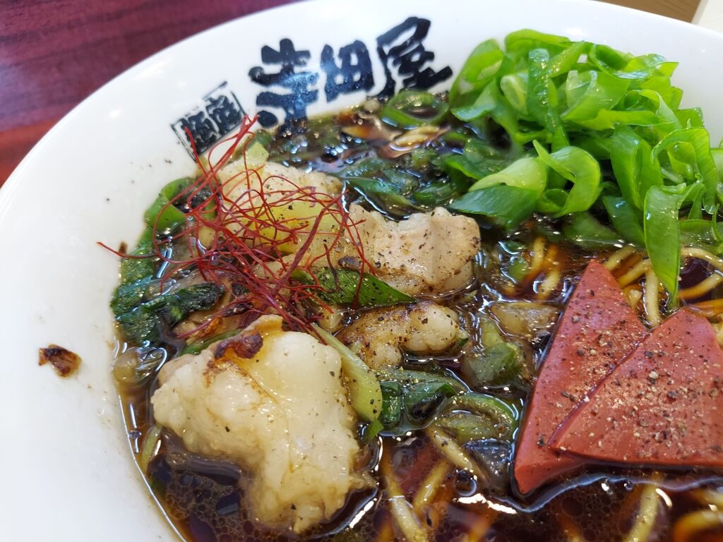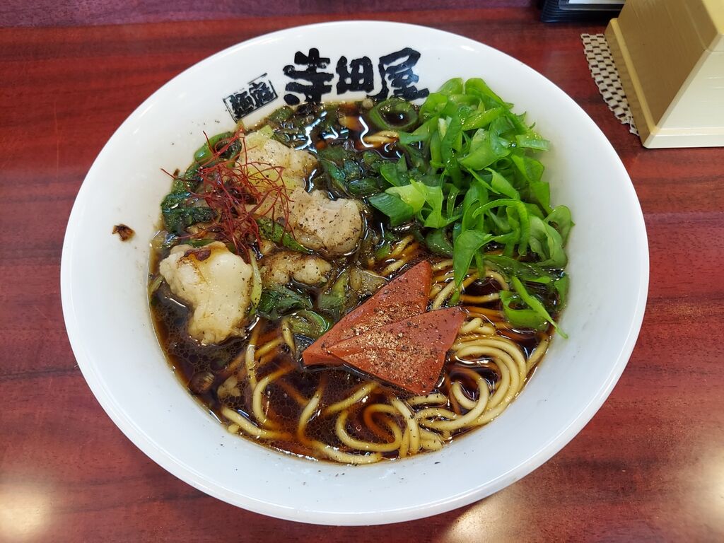 高井田系らしい真っ黒なスープに青々とした葱ですわ。
