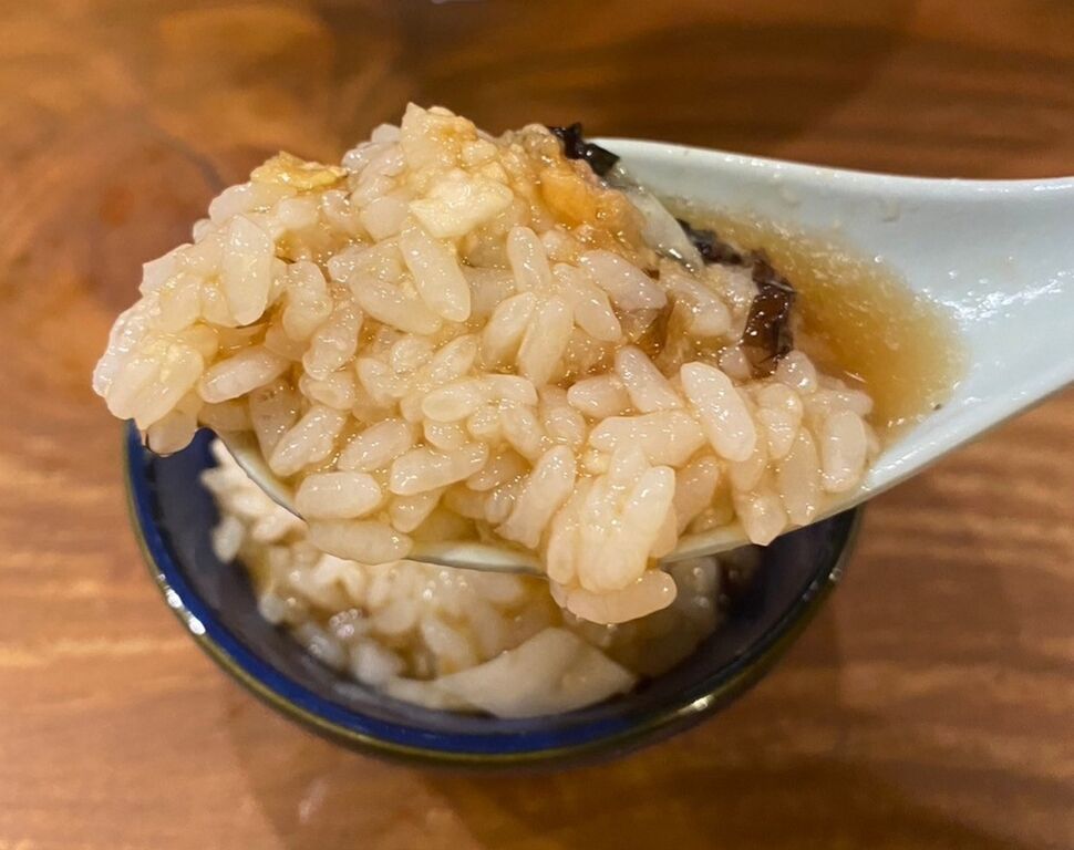 〆にご飯に残ったスープをドバがけ。