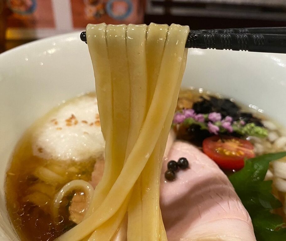 麺は平打ちの太麺でモッチリふわふわ系。