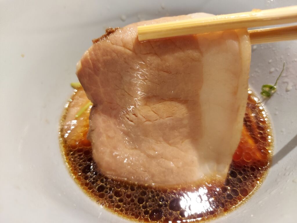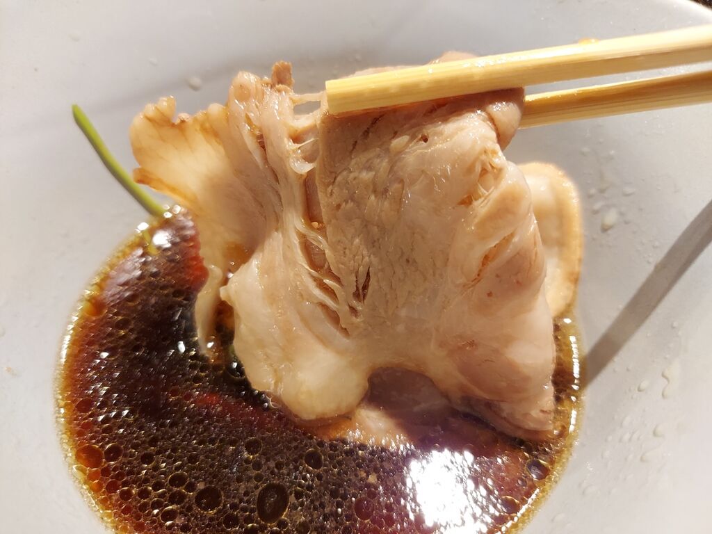 つけ汁はしょう油と鶏がバチーンとくる感じで、麺に完全に負けない程のキレキレなインパクト系。