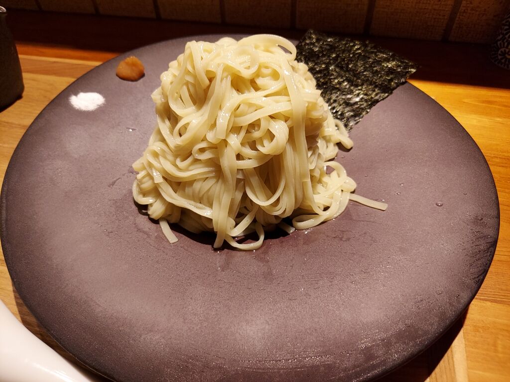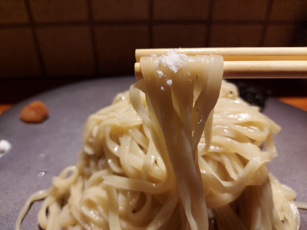 塩が別皿であるので塩で食べて、梅で食べてと麺を楽しみますが、この麺は小麦がマジで美味いっすね~😀
