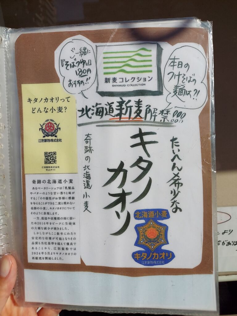 本日の麺は、奇跡の小麦「キタノカオリ」と書いてあります✌️