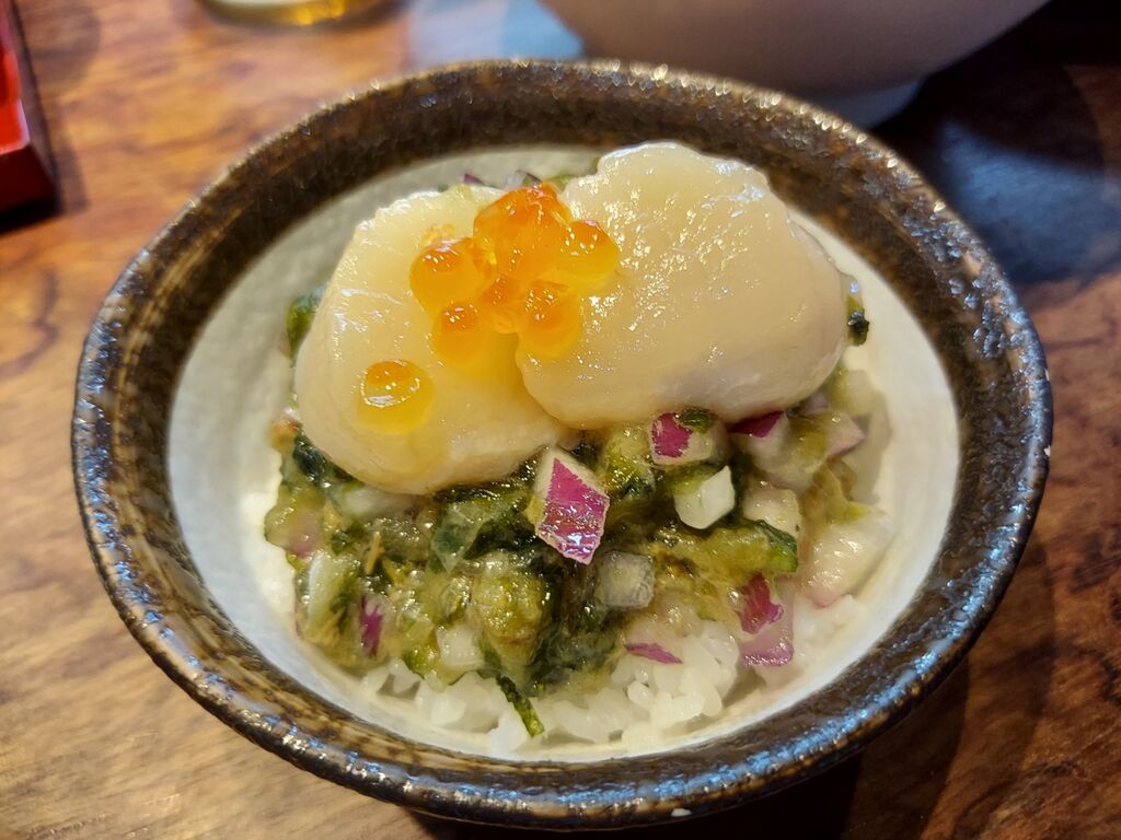 🤫ここで終わらず、残した肉厚のホタテとイクラも乗せてビジュアル最高のホタテ丼!