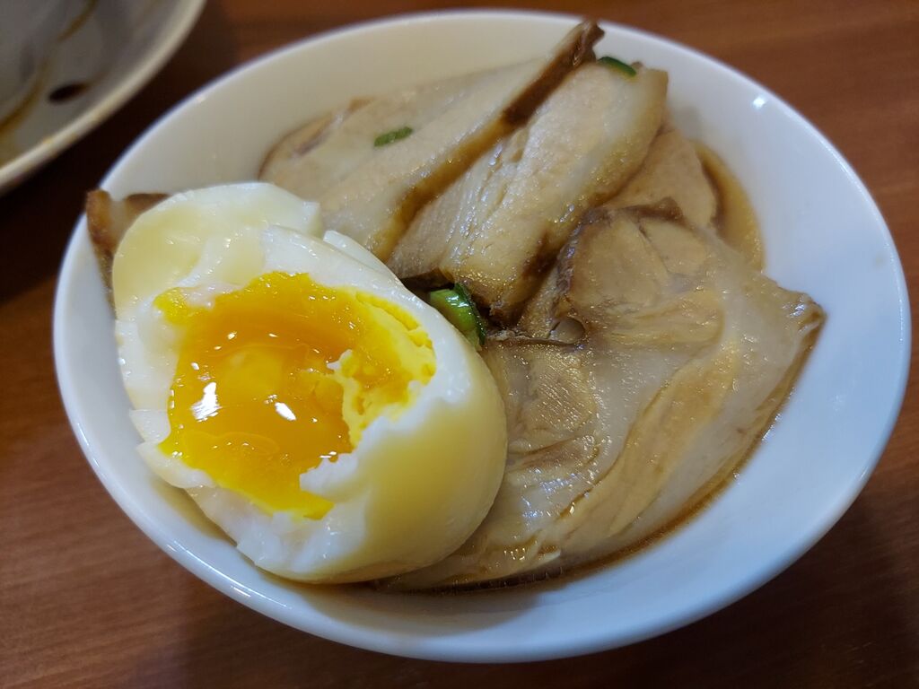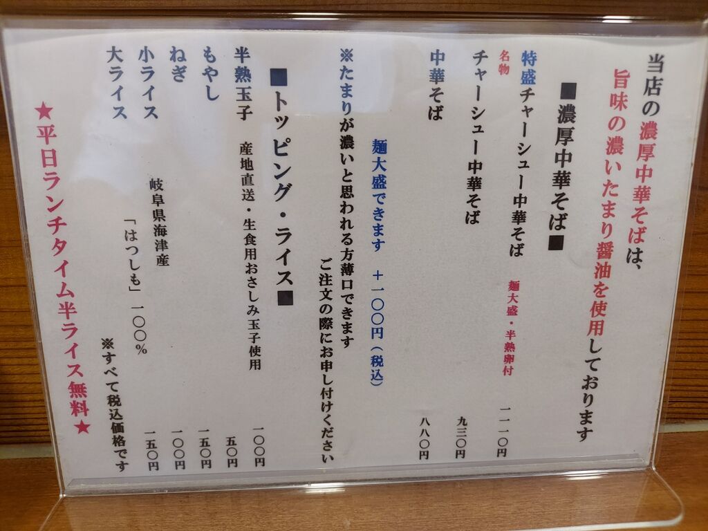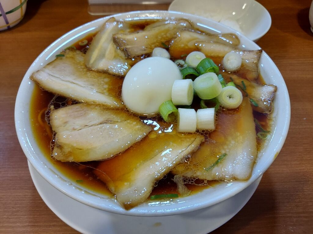 注文は『チャーシュー中華そば 930円』『半熟玉子 100円』にサービスの『半ライス』です。