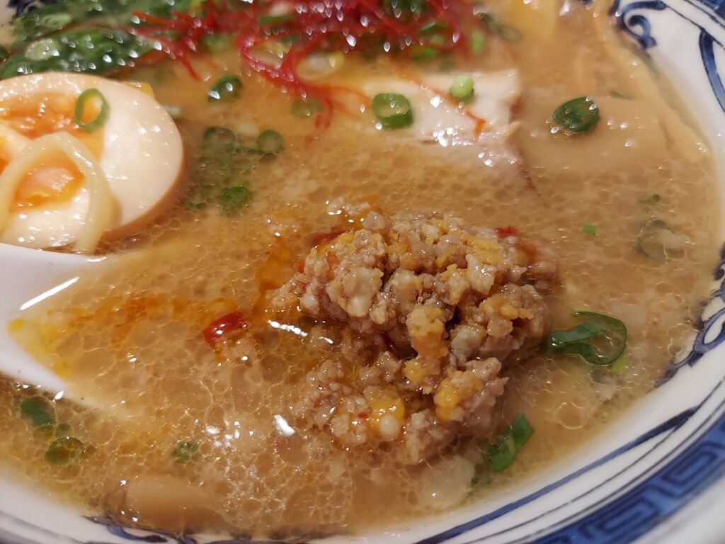 今日は少しライトなので序盤からセルフ台湾ミンチ入りに味変!!(ネギとシナチクも増しました)