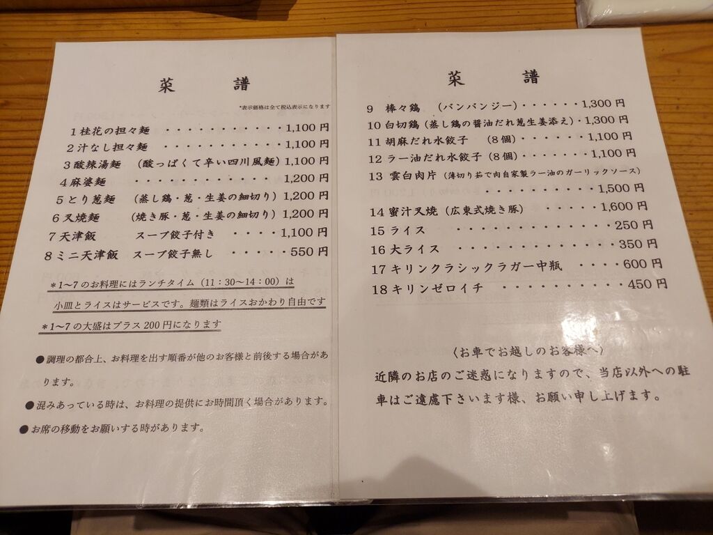担々麺は前回食べたので今回は『麻婆麺 1200円』と『天津飯 1100円』を注文。