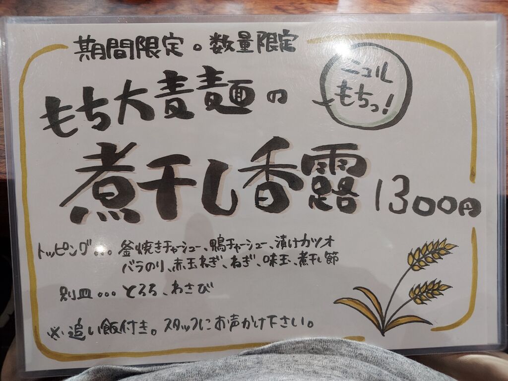 本日の注文はもちろん『もち大麦麺の煮干し香露(追い飯付き) 1300円』です✌️