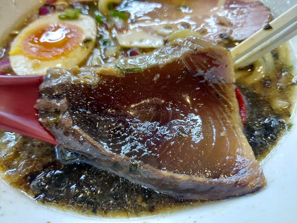 そして豪華な具材は、毎度毎度ですがしっかりと詰めてくれてて、鰹が肉厚でメチャクチャ旨い!チャーシューは過去のイメージより小さめで、もう少し食べたかったかな?😛