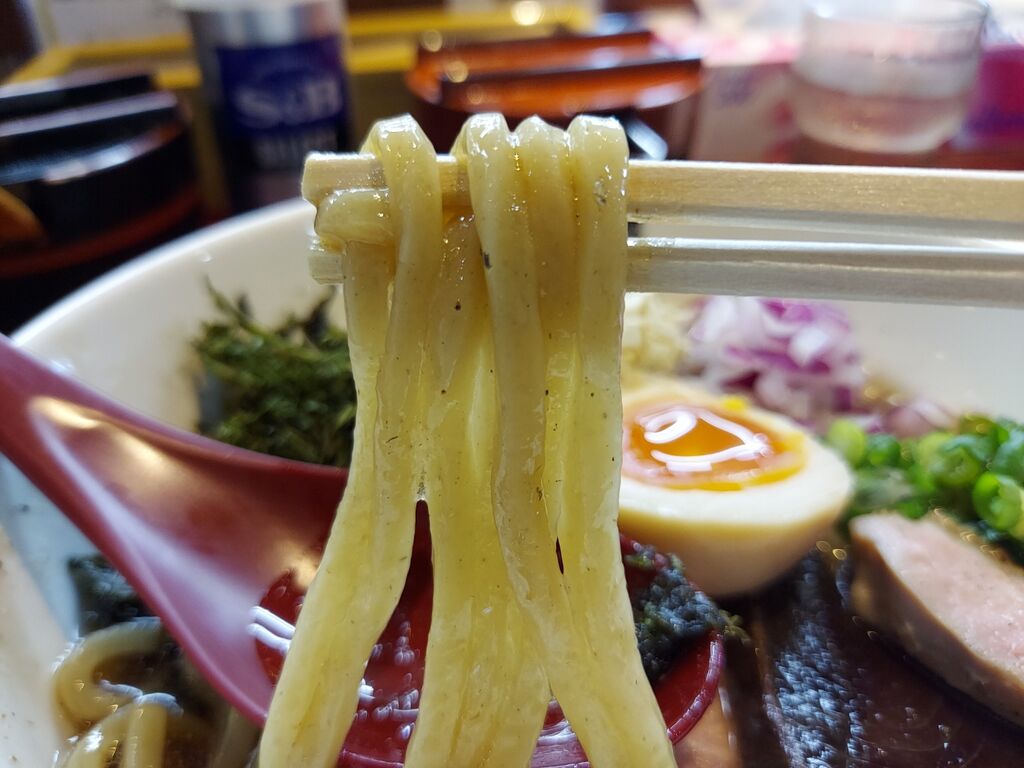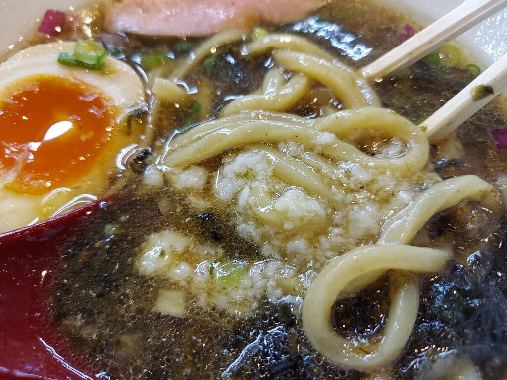 でも、この一杯は豪華なトッピングに負けない、麺とおつゆがやはりメインで、後半にはとろろを投入するとトロミが増して更にドゥルンと啜れます。