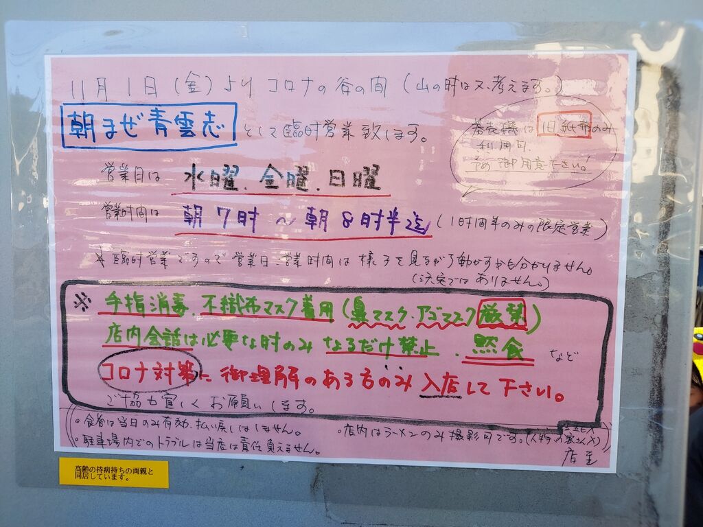 今日からメニューが3種類になった「朝まぜ青雲志」さん🗻