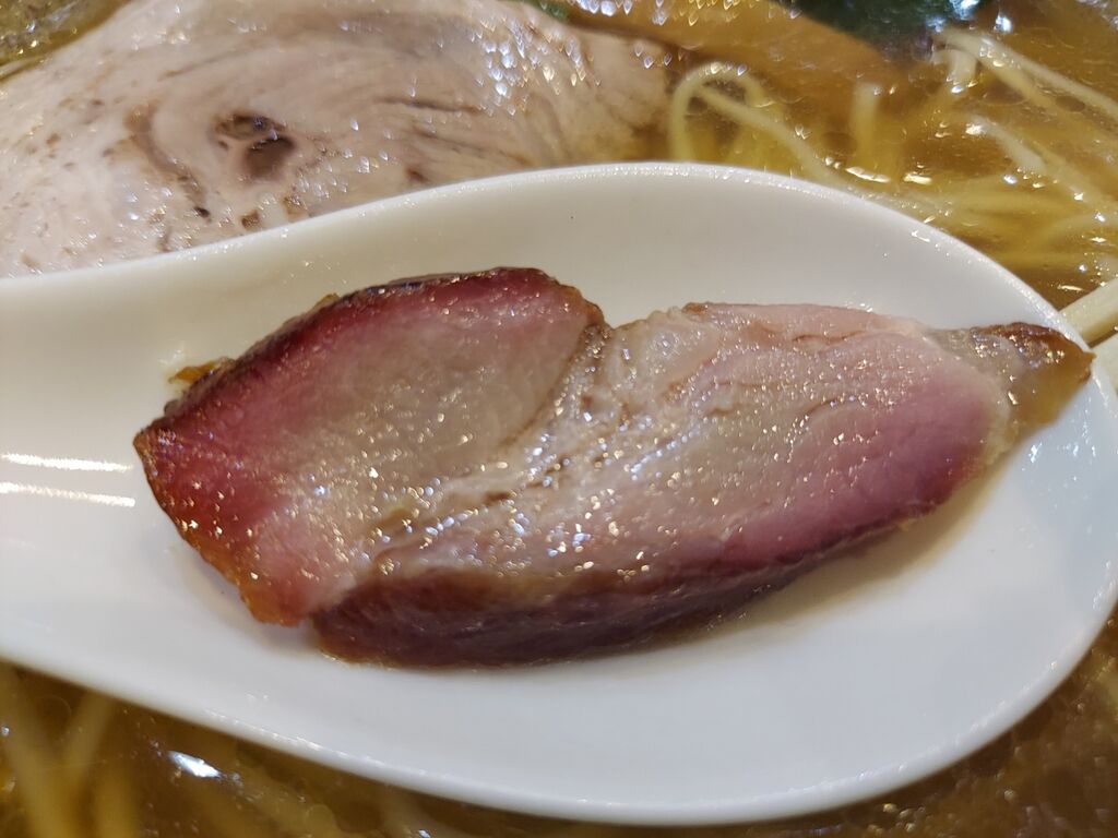 トッピングのチャーシューは2種類入ってて吊るし?釜?で焼いてあるのは歯ごたえなかなかのモノでした!