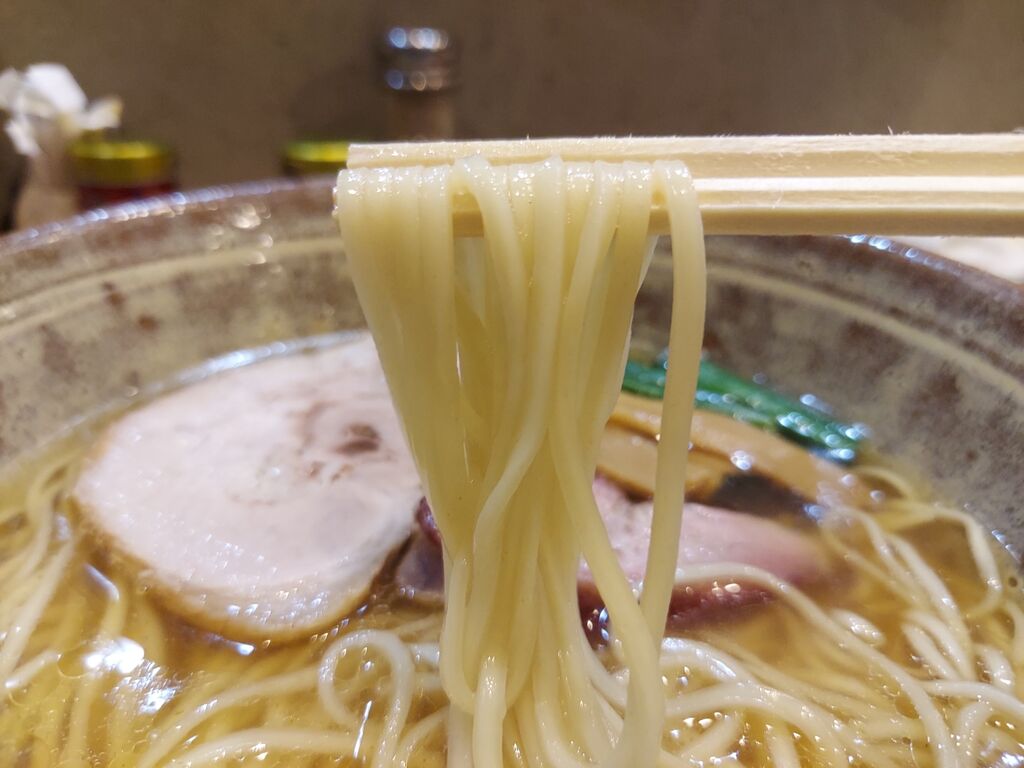 麺は中細のストレート麺でもっちりした食感で、塩スープとの相性もいい感じです。