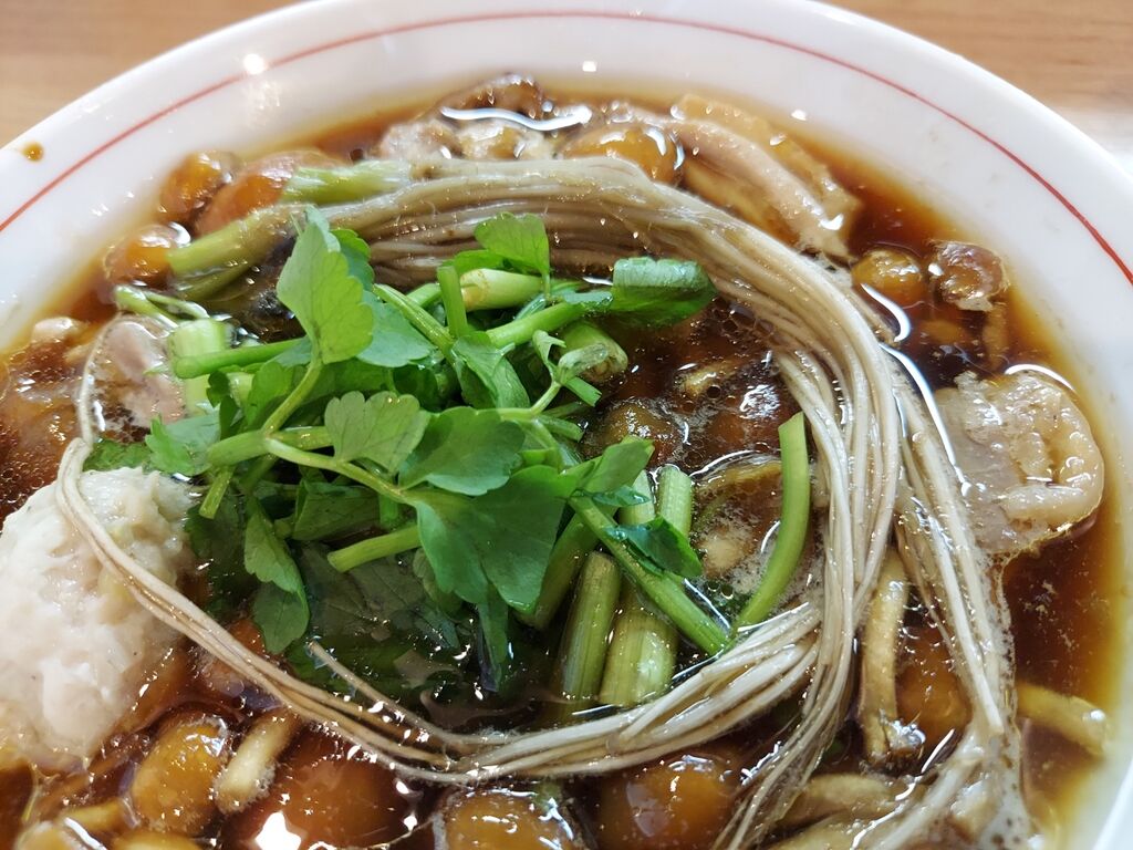 『飛騨なめこの醤油そば セリの根おひたしTP 1600円』を注文です🙂