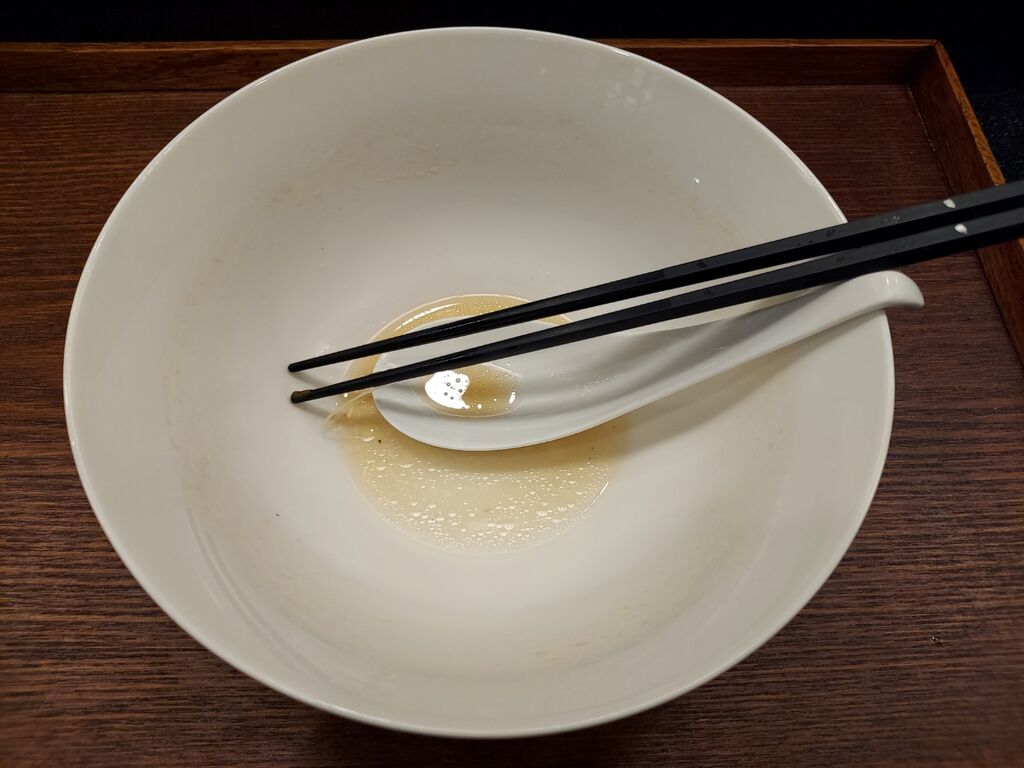 〆のスープは白醤油が少しキツメに感じましたが、玉ねぎと一緒にグビグビいくとあっと間にどんぶりは空っぽでした🍜