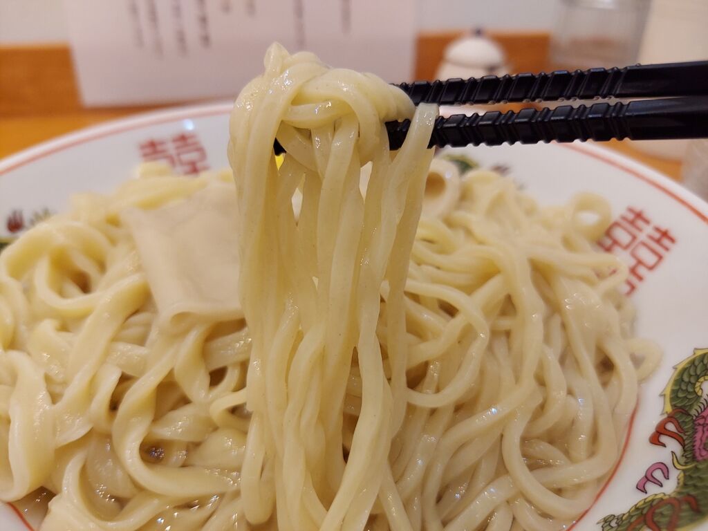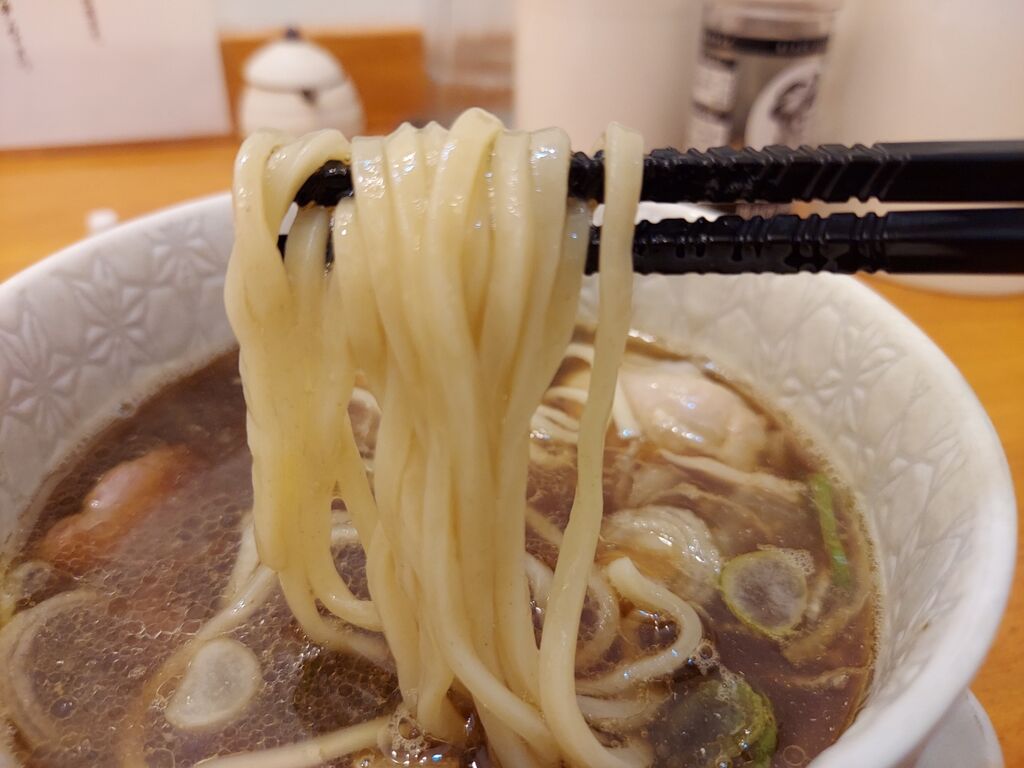 次は細麺をチュルッといただきますが、こちらはイメージ通りの弾力ツルツル。