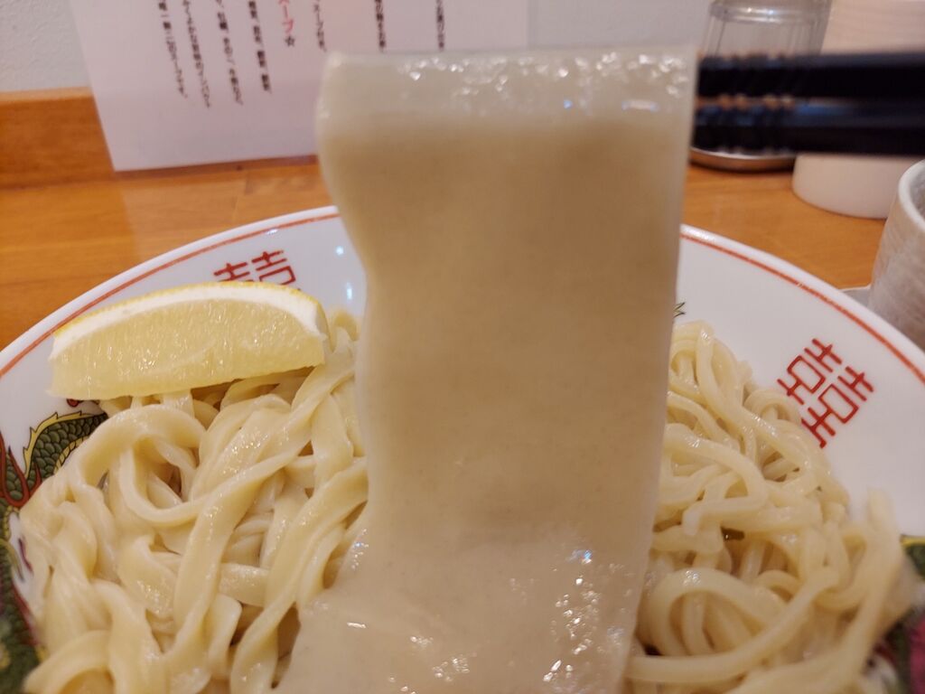 麺をつける量を調整して啜りますが、平打ち麺が一番相性が良く感じますね。