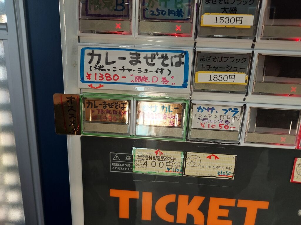 本日は完全に禁断症状出てますので『カレーまぜそば 1380円』押して『特製 500円』です。