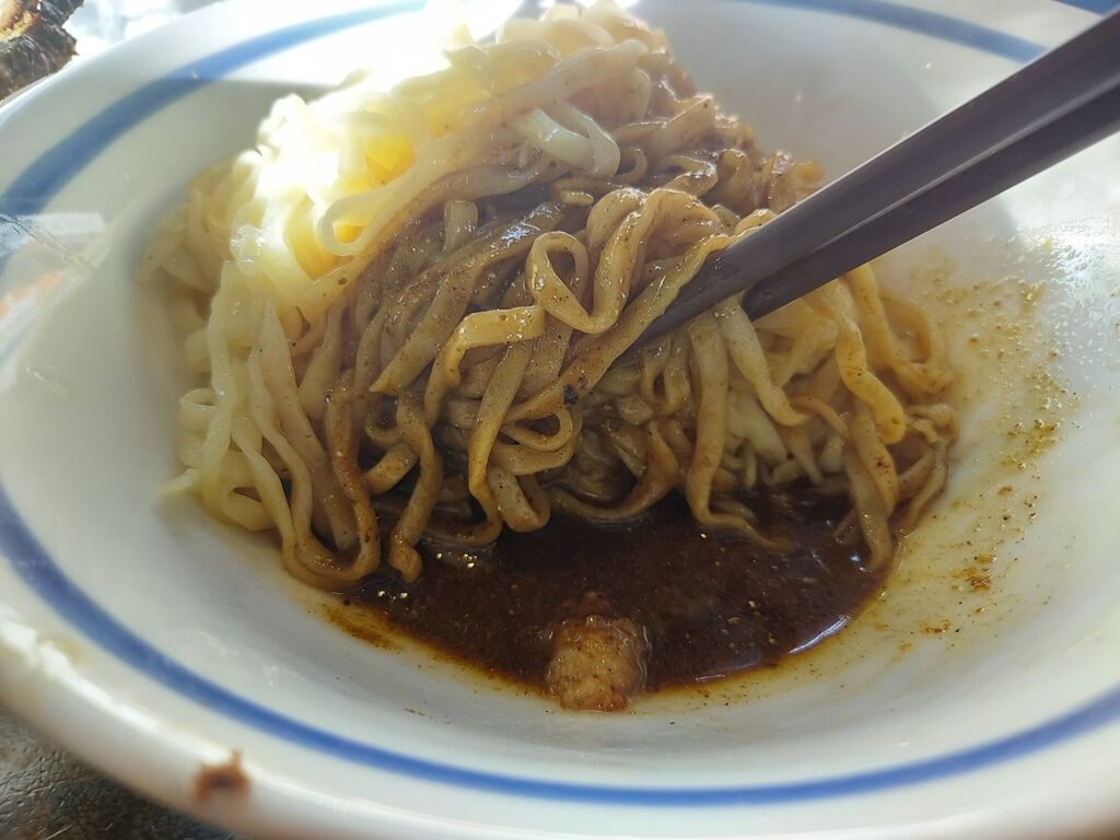 そのまま食べて口の中に刺激を与えたり、カレータレの混ざった麺と絡めたりして混ざり合う味を楽しんだりしていると、麺が無くなりましたね。