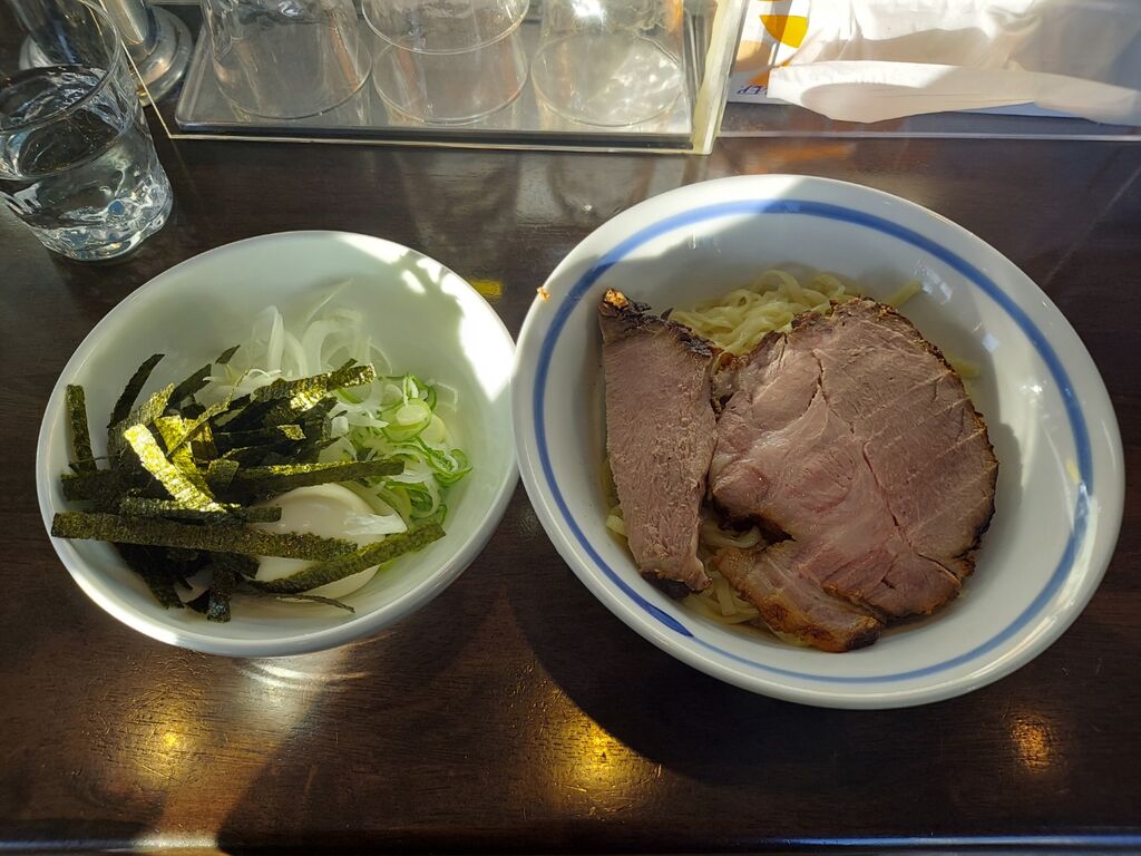 さて、混ぜおえた麺をリフトすると朝の日差しでタレが際立ちます!