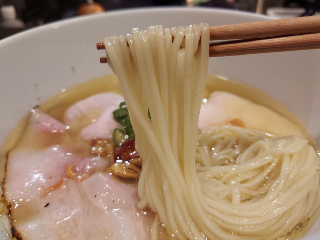 麺は細めエッジしっかりと見えるストレート麺で、自家製麺との事ですが、啜ると驚きの麺が兎に角シルキーで美味しい!