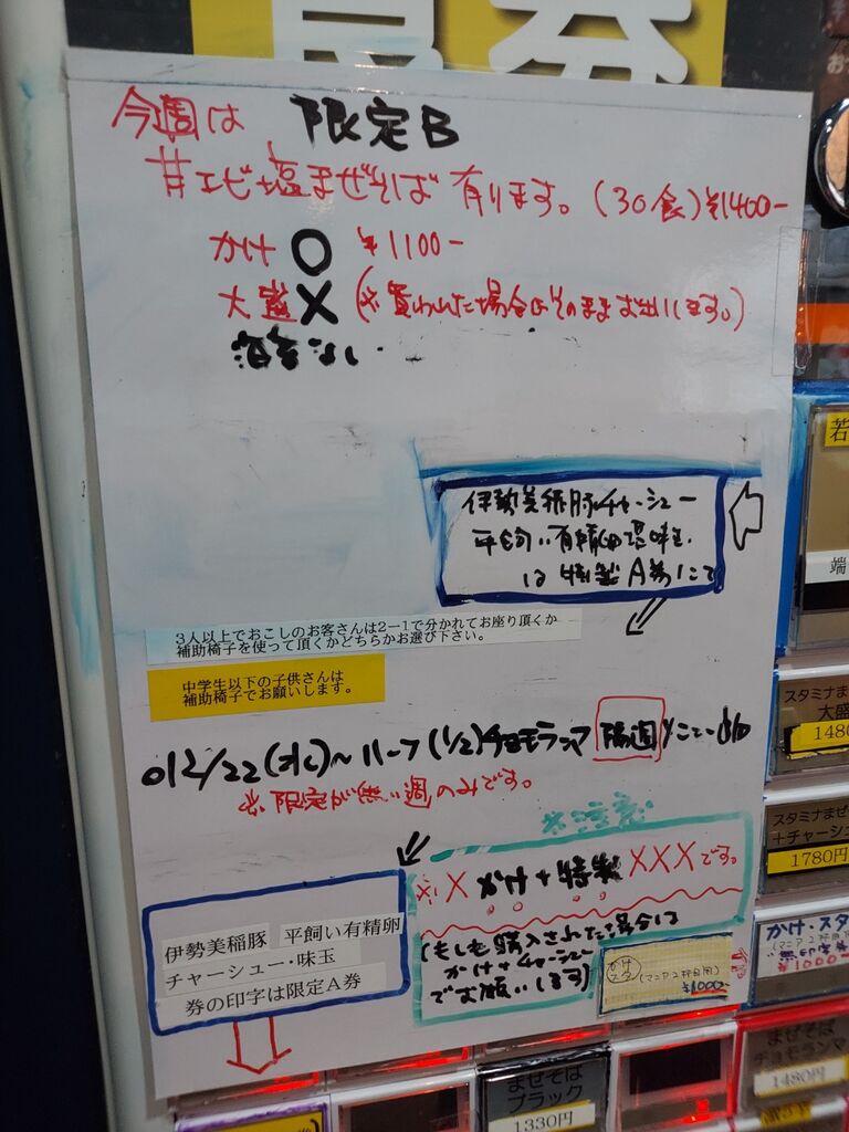 ゲリラ限定『甘エビ塩まぜそば 1400円』押して『特製 500円』をプッシュです!