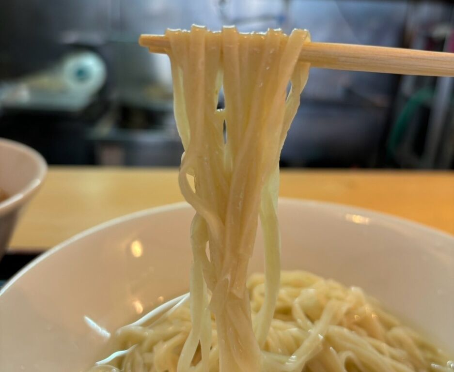 少し長めに感じる麺はスルスルっと喉越しが良く、ツイツイ啜り心地がいいのでズルズルと啜りきっちゃいます🤔ギョカイ❓