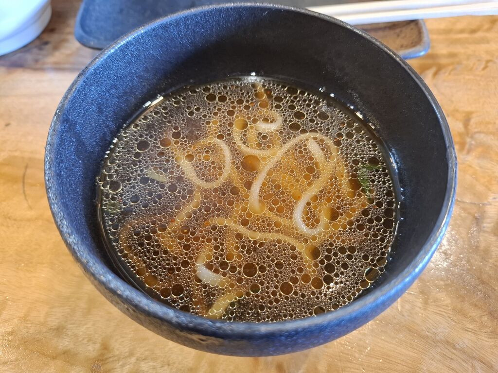 まずは麺の丼から昆布出汁をレンゲでいただきます😛