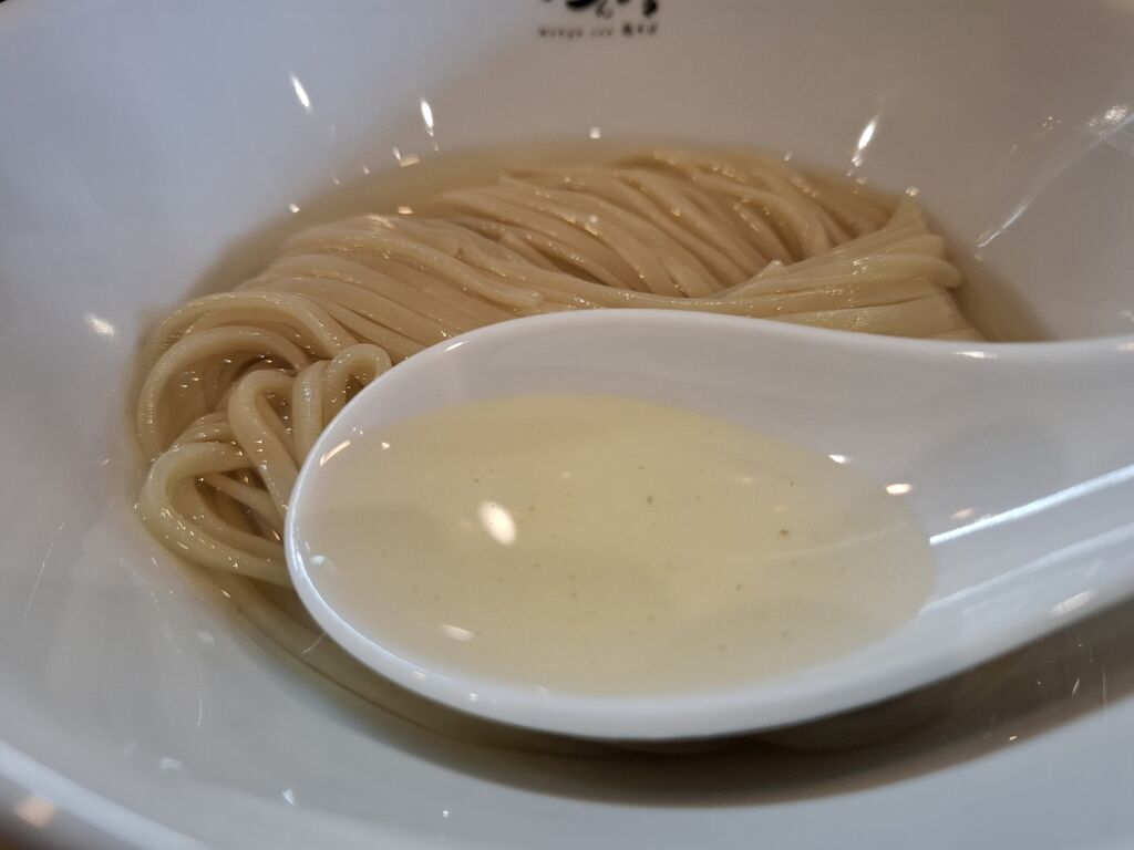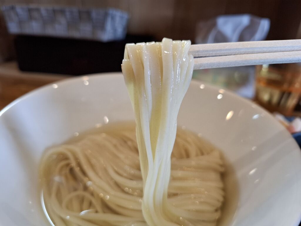 続いて、昆布出汁がかかった麺をそのまますすりますが、本日はしっかりと歯応えも感じる太目の麺は相変わらずすすりが気持ちよい。
