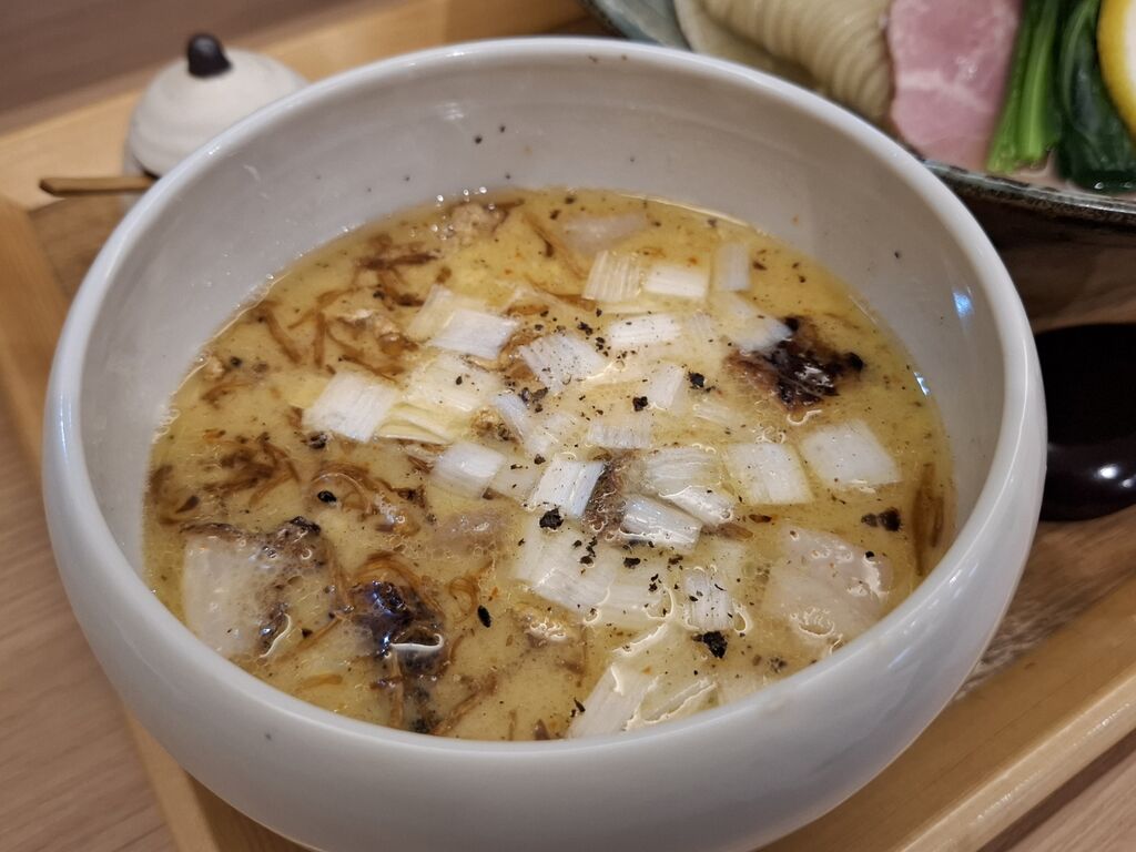 筆頭は濃厚なので、淡麗そうな『帆立と昆布水の醤油つけ麺 1200円』をプッシュ👍️