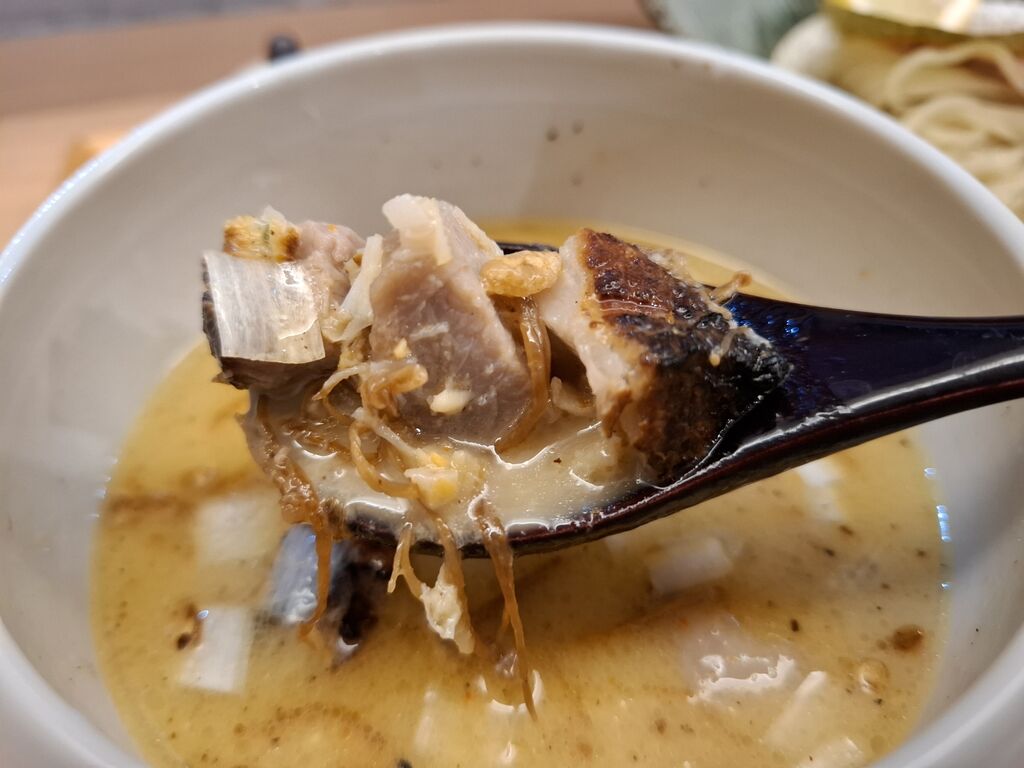 中にはチャーシューやキノコ?が入ってて、このつけ汁はなかなか美味しい。