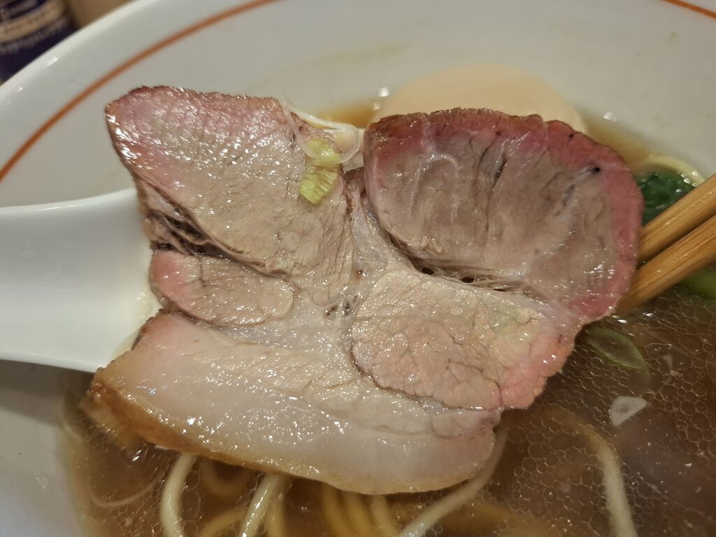 トッピングはチャーシュー2種、メンマに青菜と、味玉。