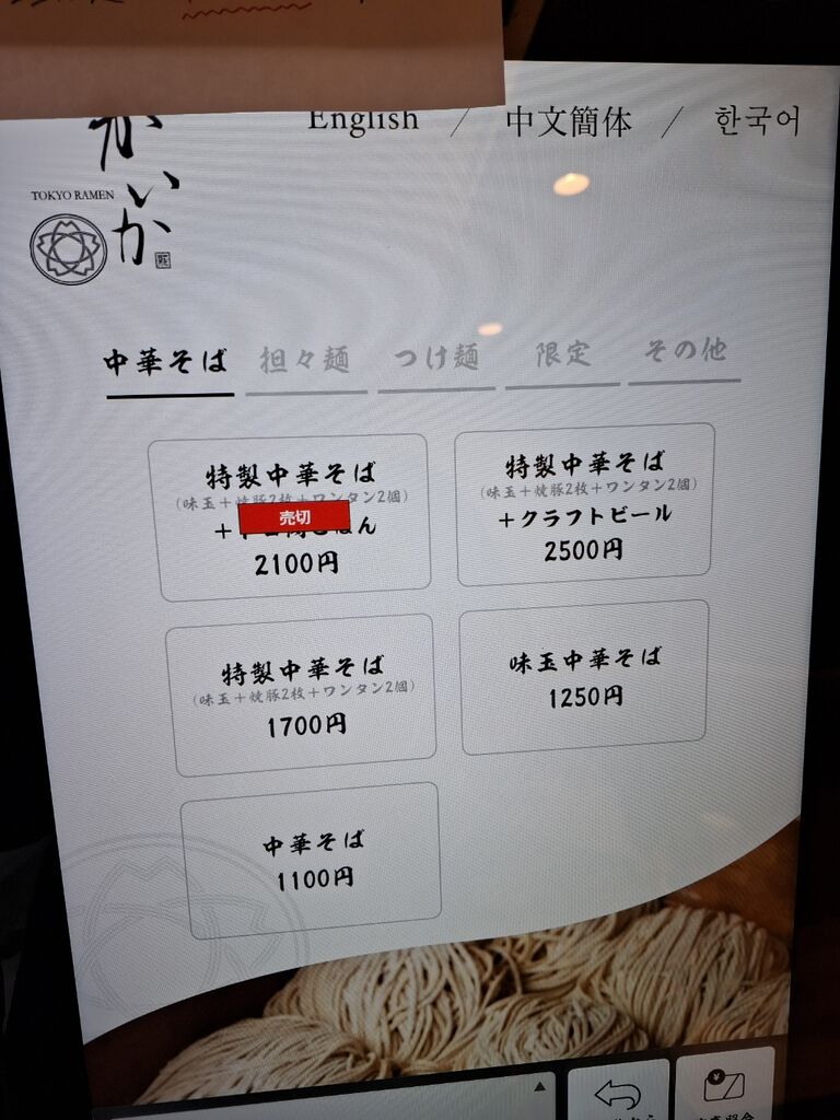 流石にお腹と相談して『味玉中華そば 1250円』をチョイスです。