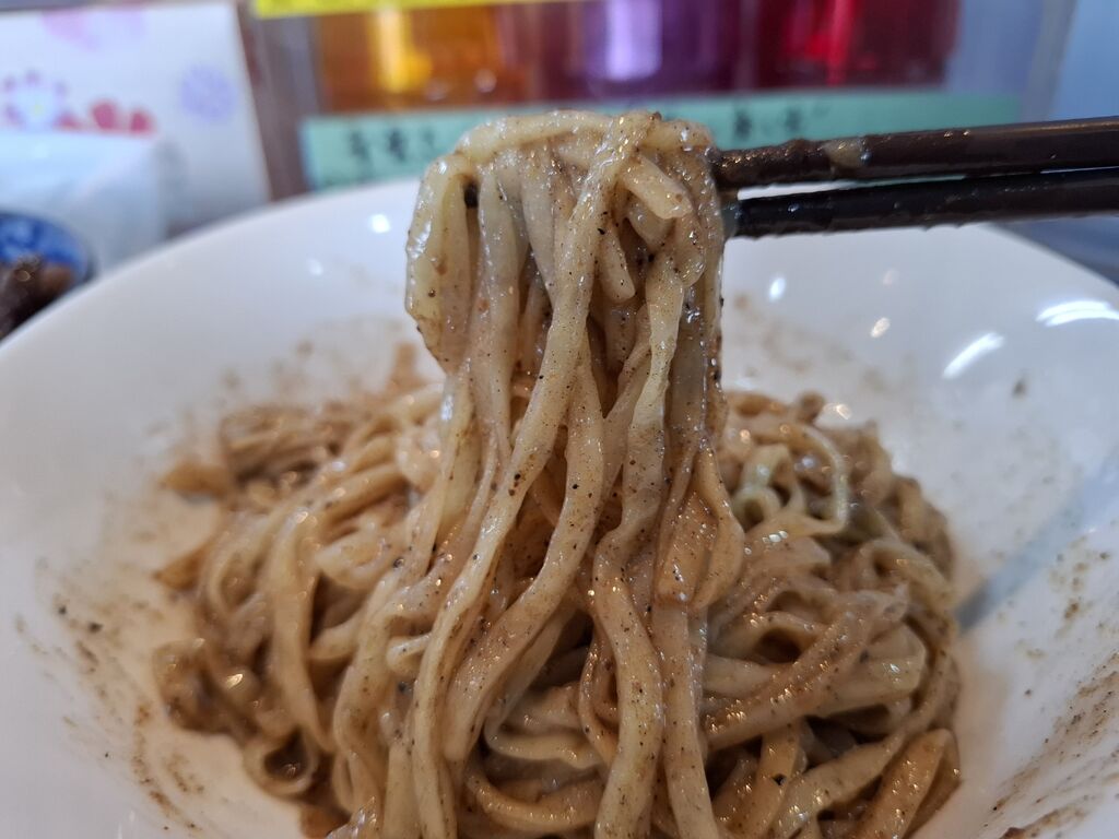 ズルっと啜りますが、濃厚なマー油がモッチモチな麺に絡むと熱々さめずに口の中へ!