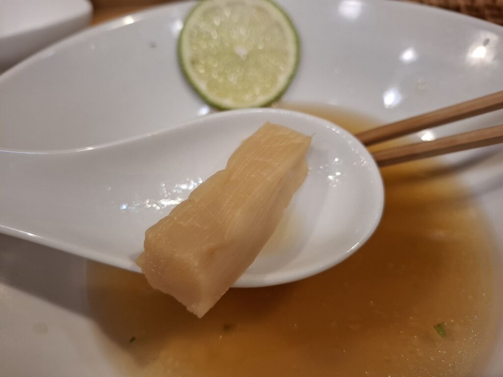 後半は香味油を垂らすのですが、スープがキラキラ✨と輝きだし、薫りが一気に膨らみますわ!